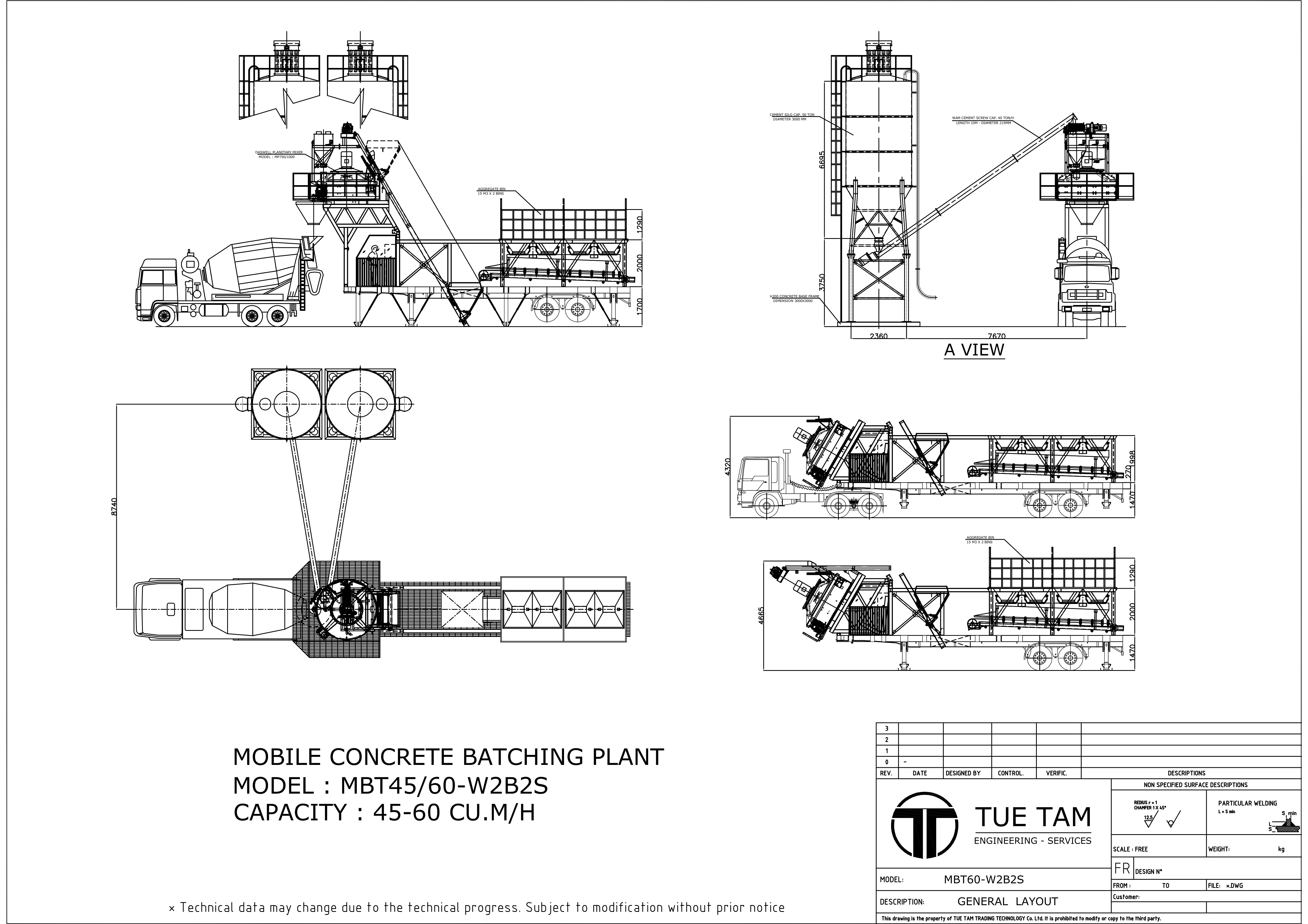 2. Compact and advance design, whole plant except cement silos is mounted on 2 axles standard trailer like open top container